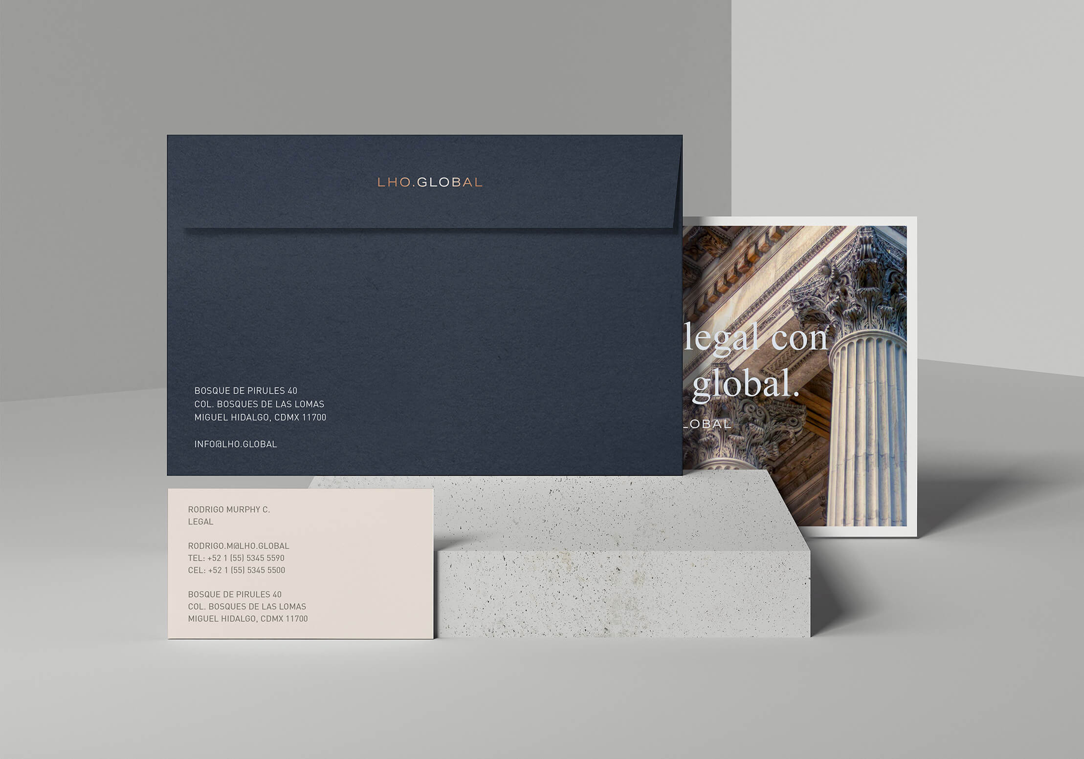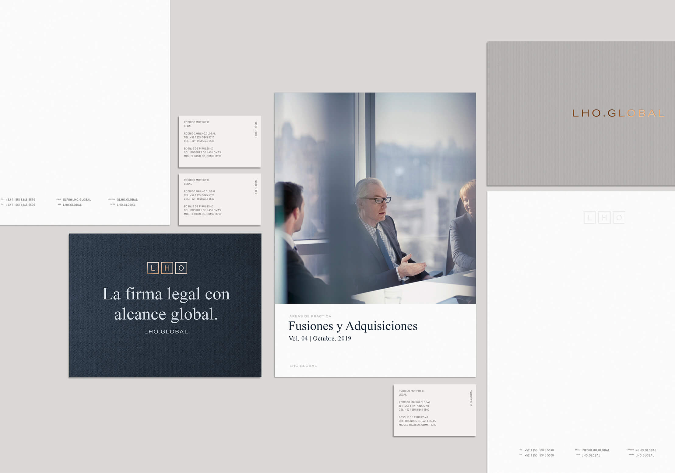 The visual identity of LHO®, based on a timeless and classic design with elegant and enduring typography, reflects the core values of the firm: professionalism, trust, and prestige. The logo and selected colors convey stability and seriousness, while the typography family reflects simplicity and sophistication.
